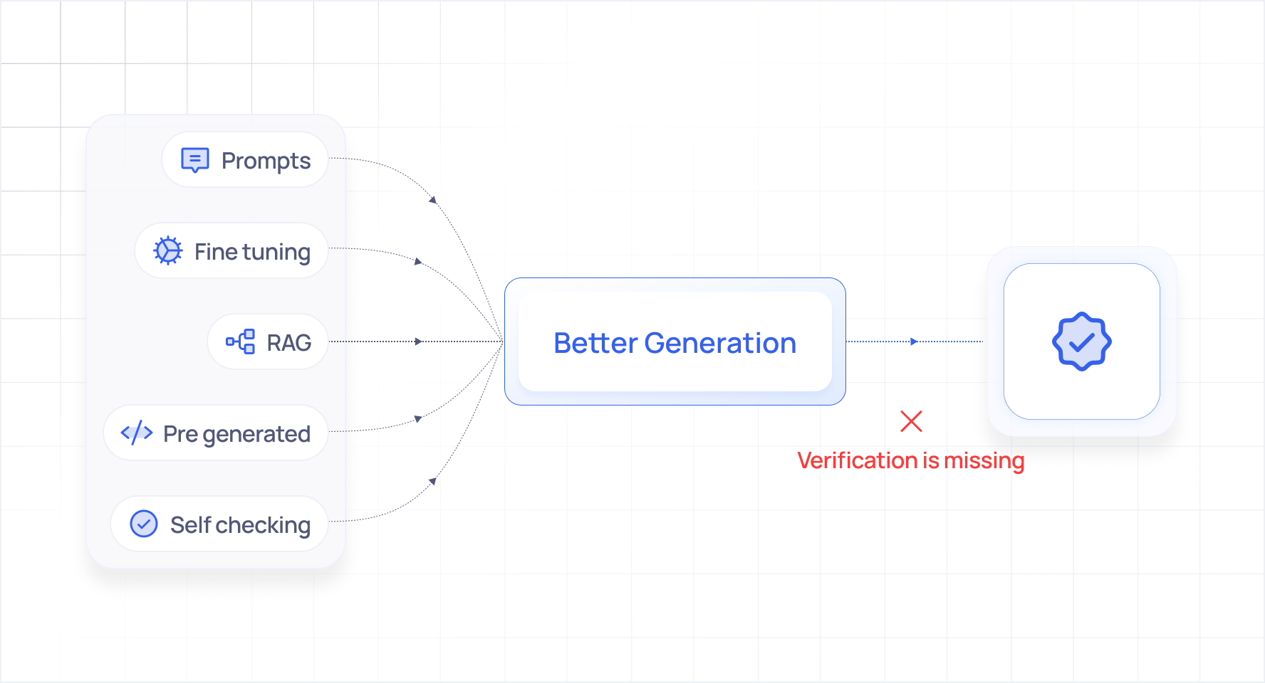 The implicit assumption is that if we can just make the generation good enough, verification becomes unnecessary. Get to 99% accuracy, and the 1% errors are acceptable.